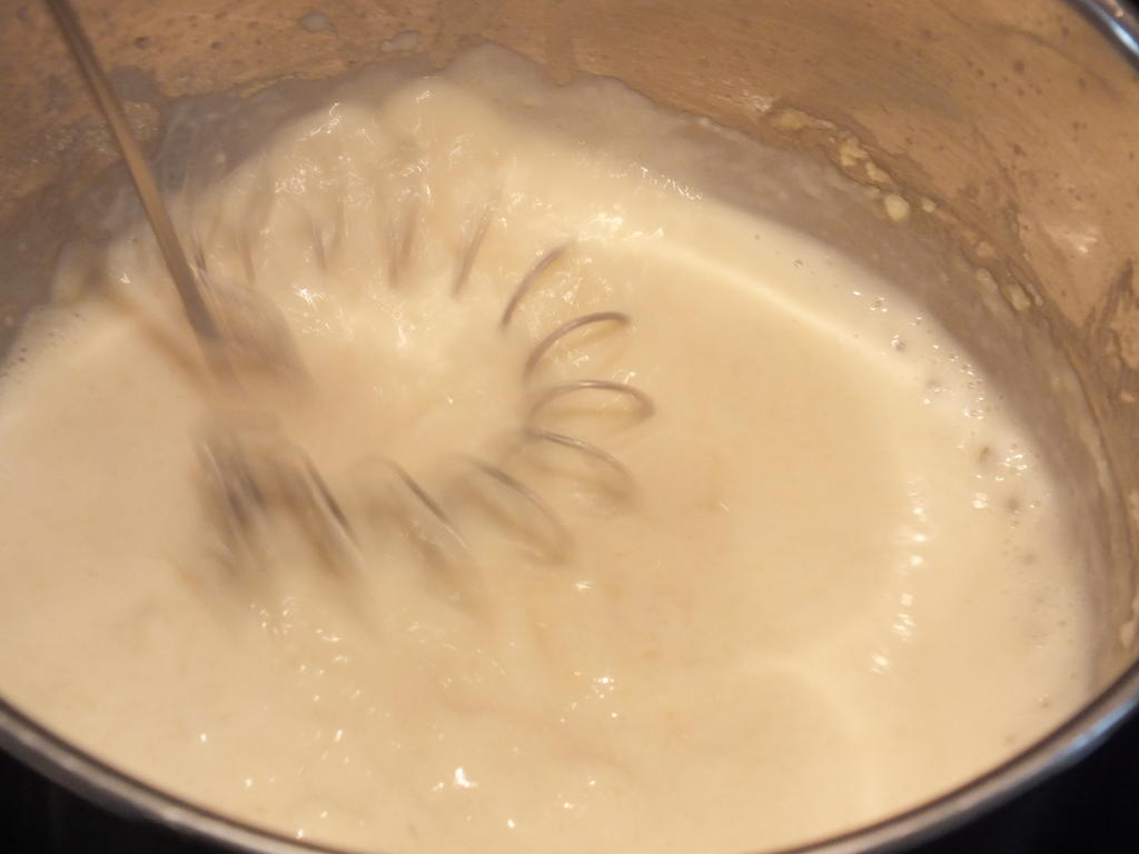 - La stå på lav varme 10 minutter, ha deretter i salt, ost, muskat og pepper. Her er ingen fasit, men smak deg frem 🙂