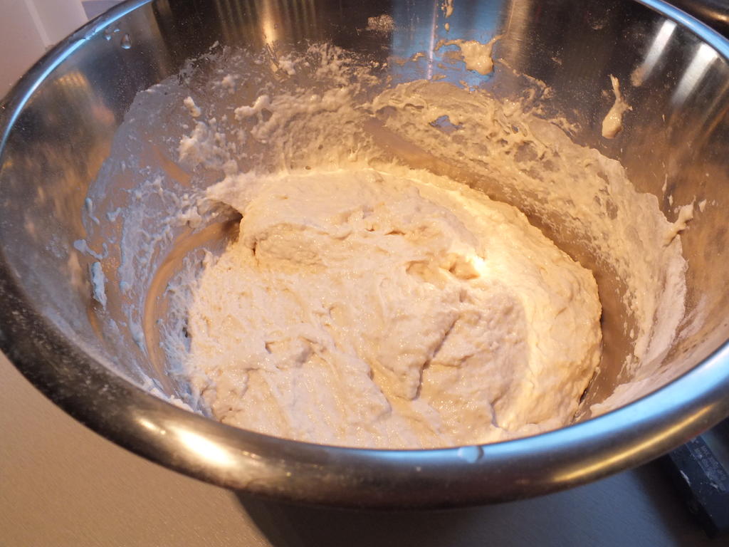 - Ha væsken opp i melet og bland sammen til en ganske seg deig