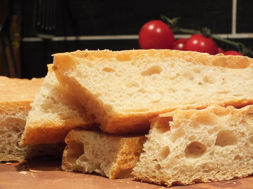 Chiabatta er et veldig luftig brød, og har en sprø stekeskorpe.