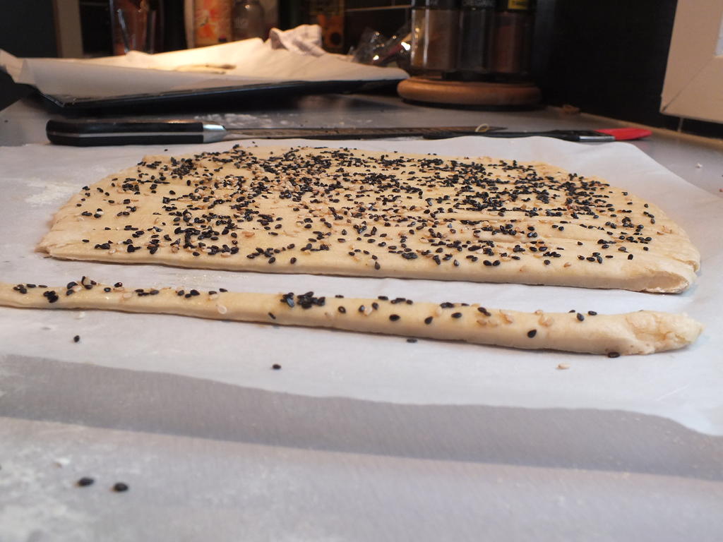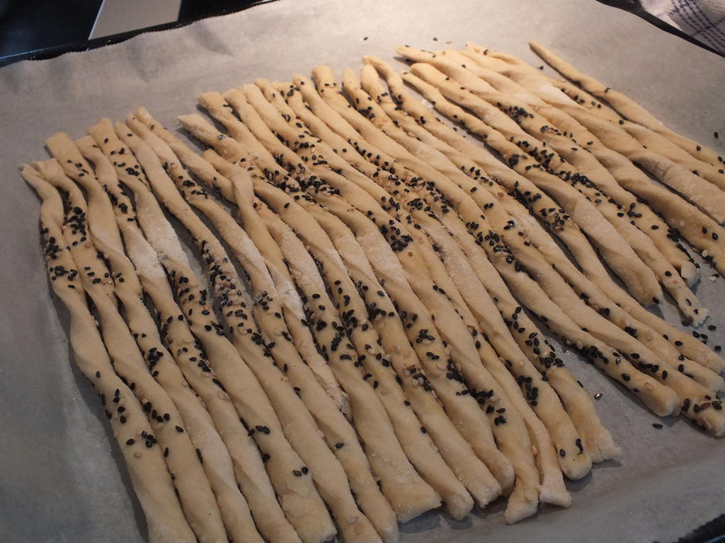 - Kutt deigen i strimler på ca 1 cm bredde og e