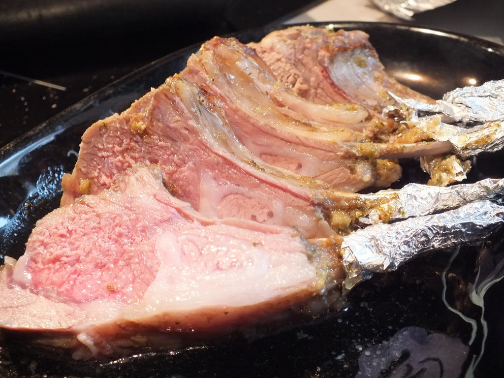 - Gni blandingen over lammet og plasser med beinsiden ned i en langpanne. (Har du induksjonsovn må du bruken en langpanne som passer til dette, da den skal over på komfyren etterpå)