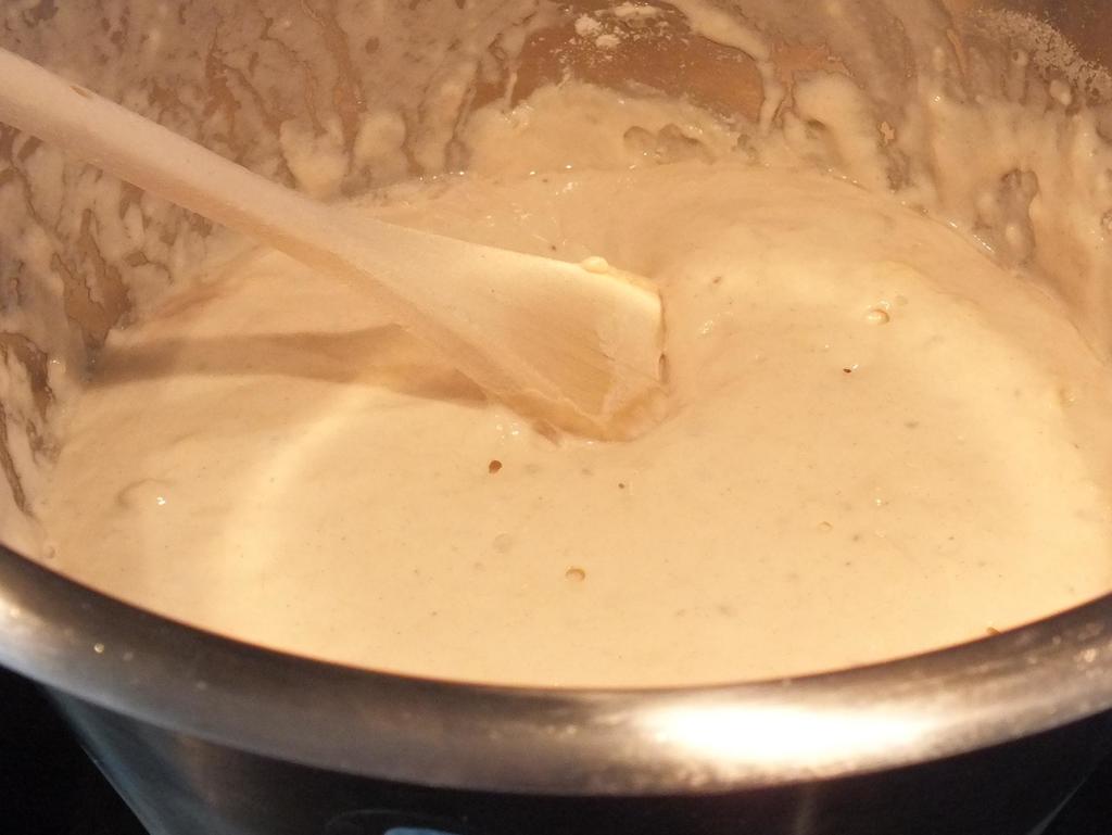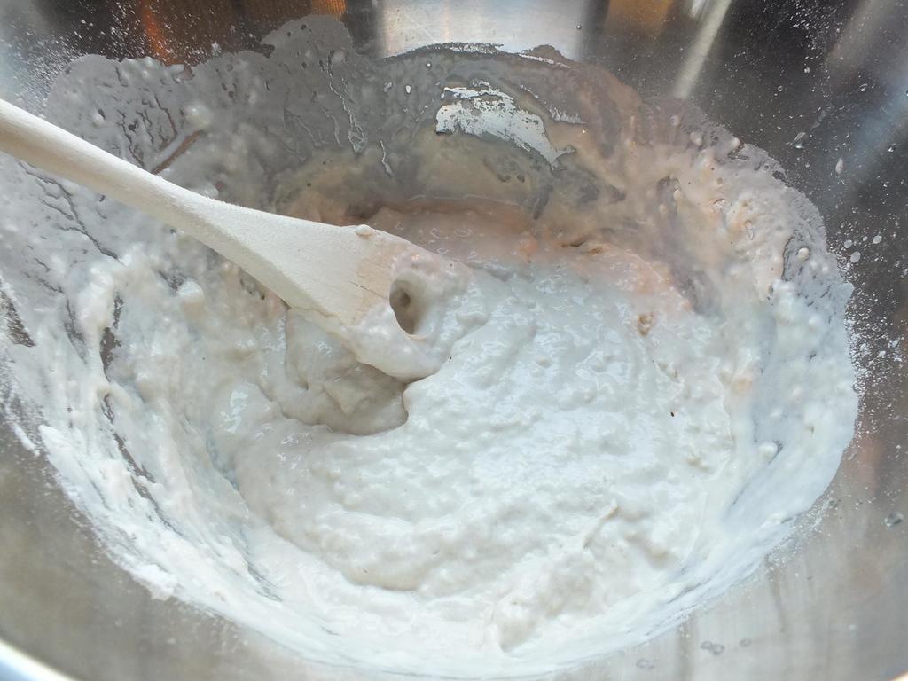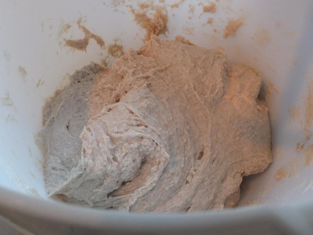 - Start med å sette forgjær, 12-24 timer før du skal begynne. Den skal bestå av av 125gr av melet mel, 25 gr gjær og 1.25 dl av vannet. Rør dette lett sammen og sett i kjøleskap. (Dette kan sløyfes, du kan godt lage brødet på vanlig måte, men brødet blir luftigere, sprøere og bedre hvis du tar deg tid til dette)